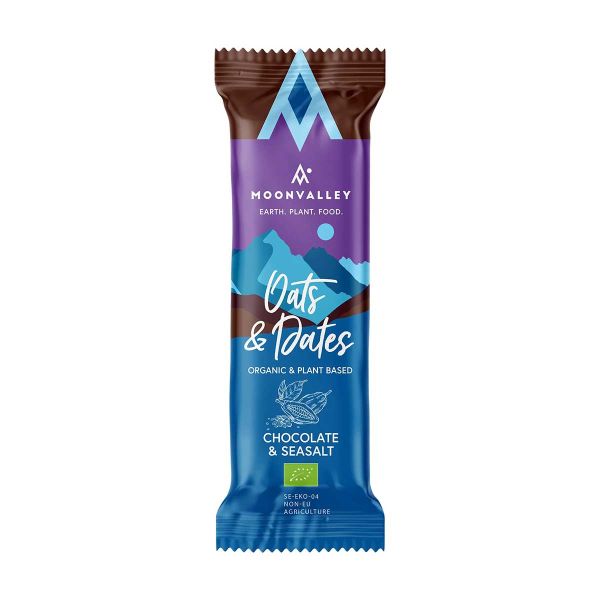 Grundlagt i 2018 af tre stiftere fra de nordiske lande tilbyder mærket Moonvalley denne energibar med chokolade og havssalt til alle sødtænder og dem, der søger en bar til et energiboost før, under eller efter fysisk aktivitet.