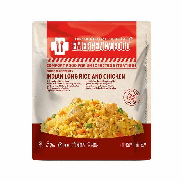 Langkornet ris og kylling på indisk vis er en komplet frysetørret tilberedning, der kombinerer simple ingredienser med en krydderblanding inspireret af det indiske køkken. Denne ret er designet til at opfylde ernæringsmæssige behov i situationer, hvor fødevareautonomitet er essentiel: krise, naturkatastrofe, logistisk afbrydelse eller forebyggende opbevaring.