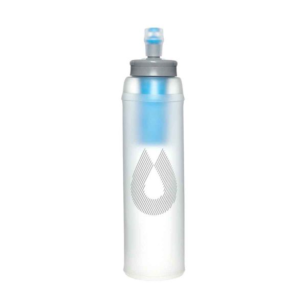 Hydrapak Ultraflask+ 0,5 L: en let og kompakt filtreringsflaske til at drikke direkte fra kilden i fuld sikkerhed. Blød og komprimerbar passer den perfekt til dynamiske aktiviteter som trail running og vandring.