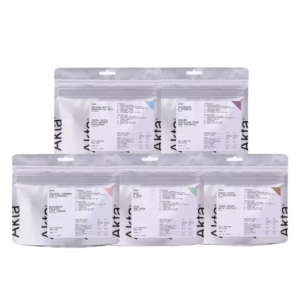 Dette udvalg af 5 frysetørrede måltider fra Akta tilbyder økologiske, afbalancerede og nemme retter til dine outdoor-eventyr. Lette, kompakte og varierede – perfekte til et varmt måltid på vandretur, trekking eller bivouac.