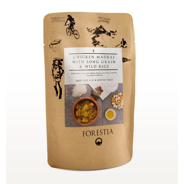 Chicken Madras er en steriliseret ret fra Forestia, pakket i en solid og kompakt pose, der er nem at tage med overalt – f.eks. i handskerummet i din bil eller i rygsækken på din vandretur.
